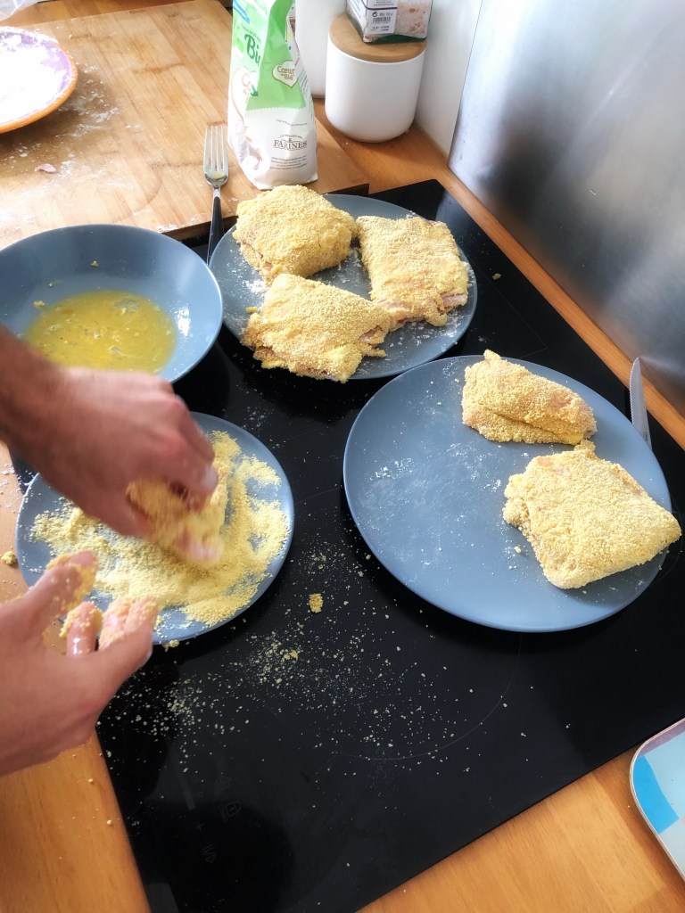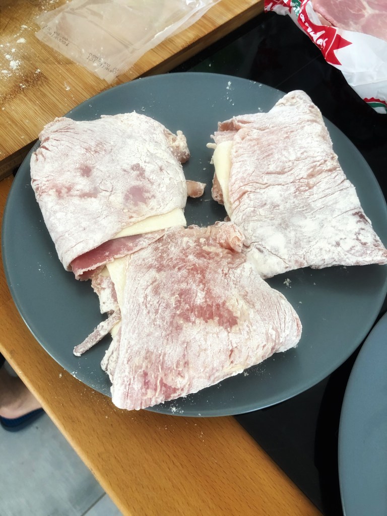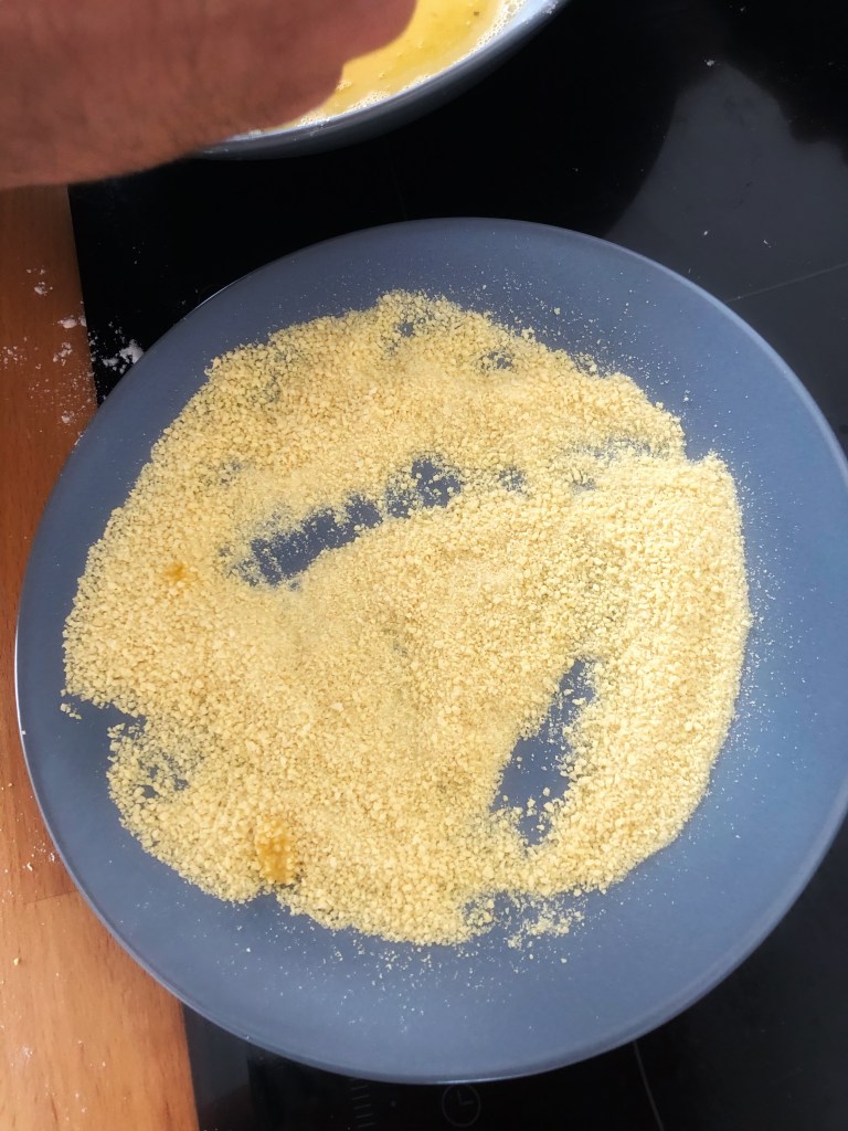 - Tremper le cordon bleu dans l’oeuf battu en prenant bien soin des côtés.
