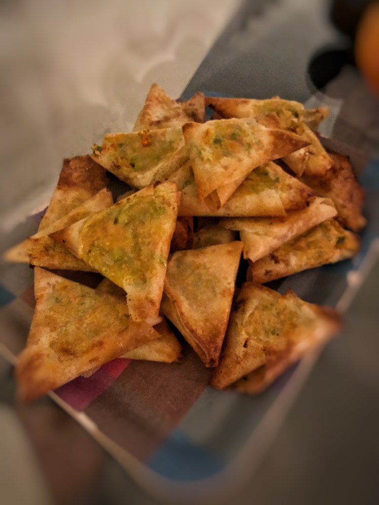 - Déposer les samoussas sur une feuille de cuisson déposée sur une plaque. Les badigeonner d’huile à nouveau et les enfourner 30 minutes.