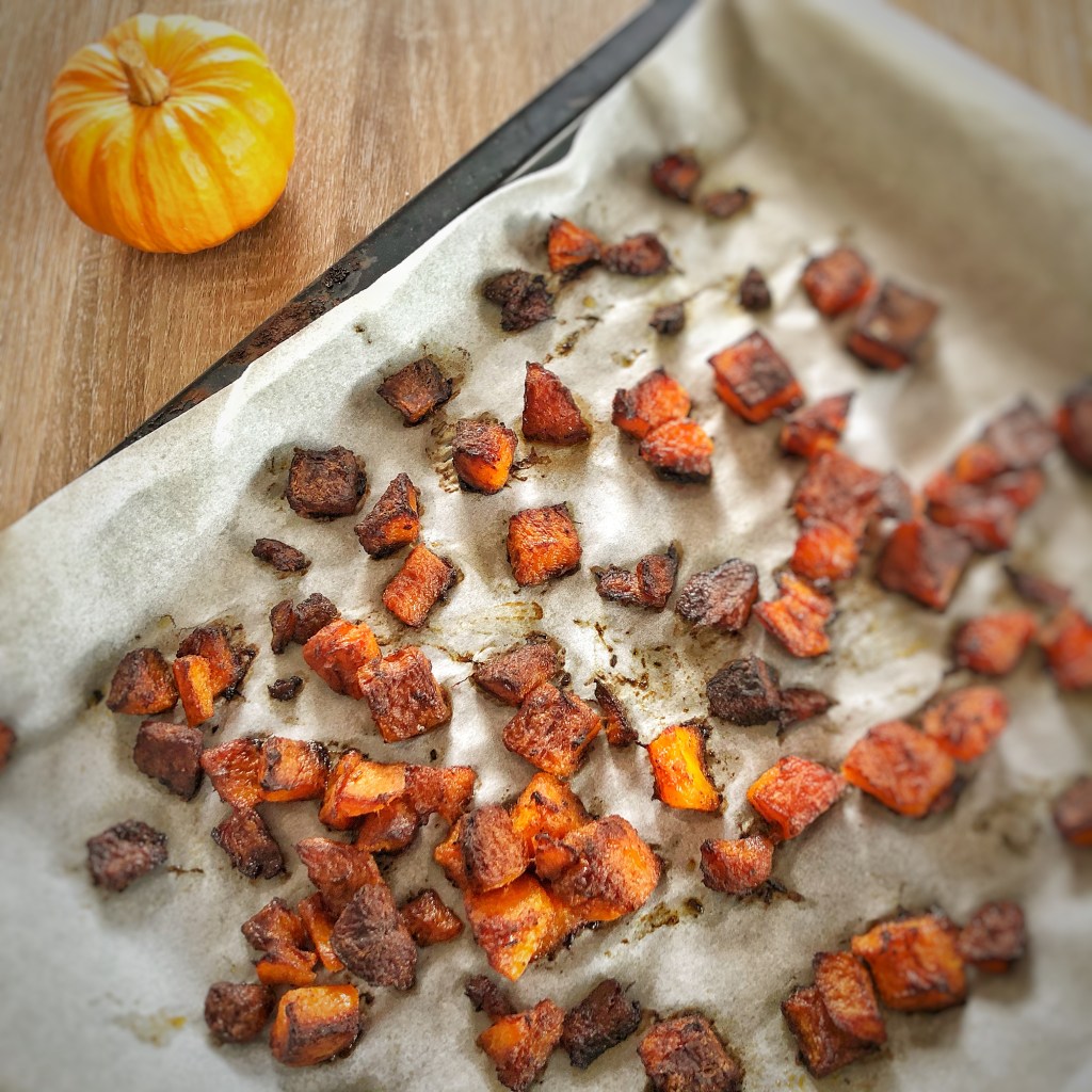 - 800g de butternut en cubes d’1cm sur 1 cm (à préparer soit même, ou prêt à utiliser au rayon des fruits et légumes ou surgelés)
