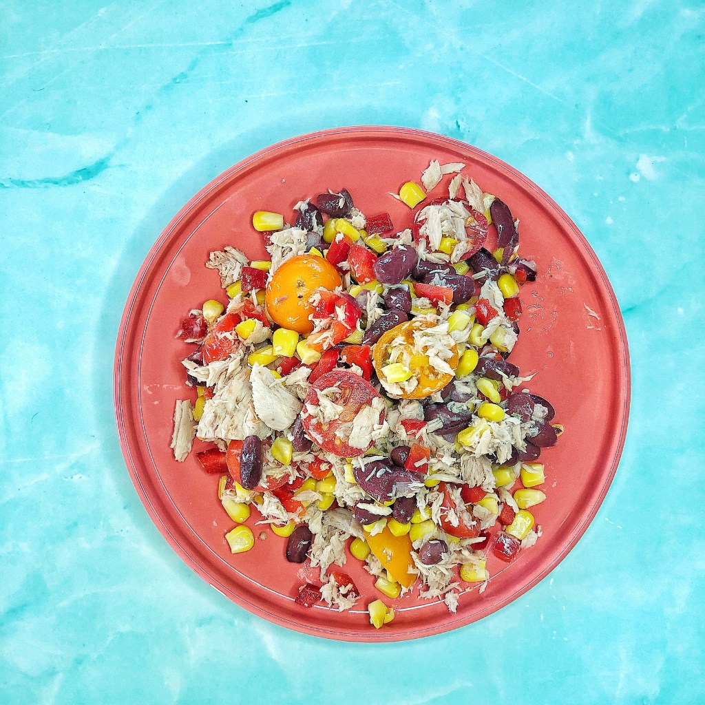 - Y ajouter les haricots rouges égouttés, le maïs, et le thon émietté. Mélanger.
