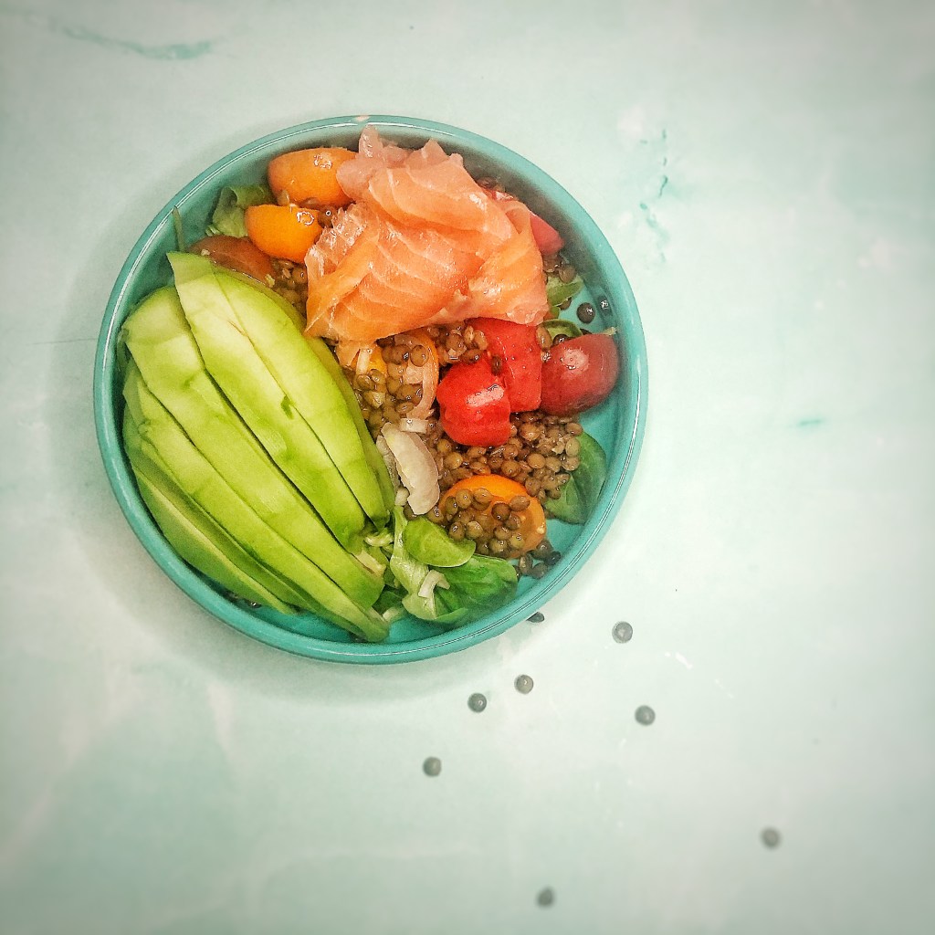- Y ajouter la tranche de saumon et l’avocat coupé en tranches.