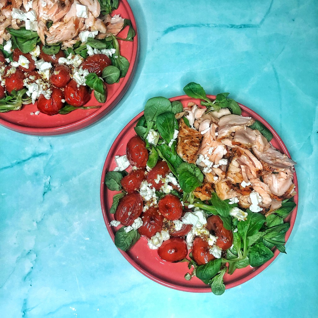 - Dans une assiette, déposer les ingrédients et la vinaigrette.