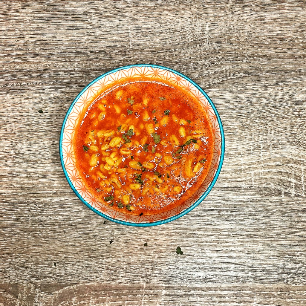- Ajouter le blé, 1,2L d’eau, le bouillon de légume, le concentré de tomate, saler et poivrer.