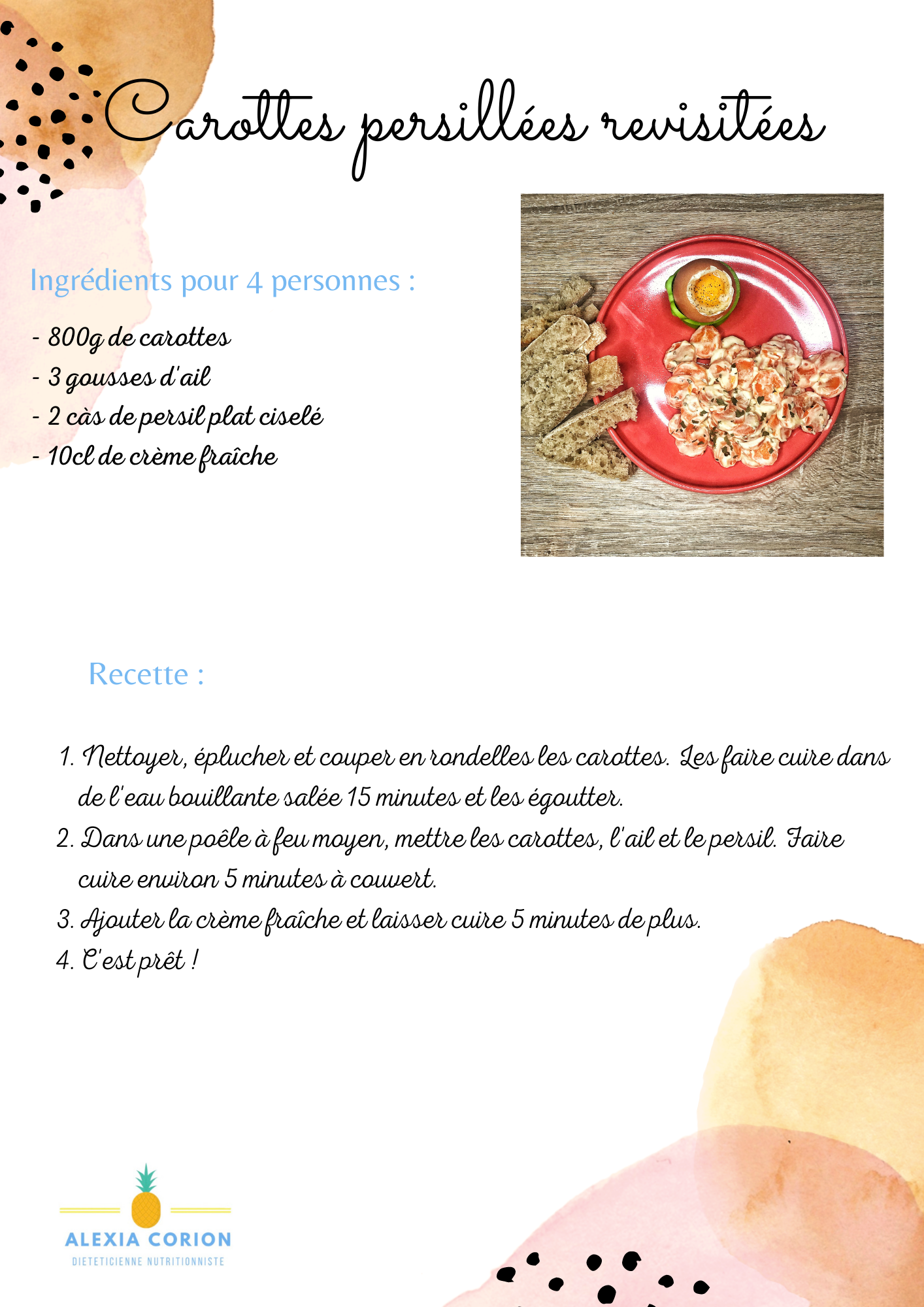légumes, Non classé Carottes en persillade DietPassion Publié par Alexia Corion le 11 mars 202210 mars 2022 Pour télécharger la version imprimable c’est ici : carottes en persillade pdfTélécharger Partager : Cliquer pour partager sur X(ouvre dans une nouvelle fenêtre) X Cliquez pour partager sur Facebook(ouvre dans une nouvelle fenêtre) Facebook J’aime chargement… Similaire